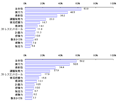また、人事担当として新卒新人に求める要素についてたずねたところ、トップ3は「主体性」「実行力」「柔軟性」で、昨年と今年で変化は見られな かった。しかし、「ストレスコントロール」が昨年の7番目から5番目にランクアップしており、苦境の中でもストレスを自分でコントロールできる精神面の強 さが求められているようだ。
